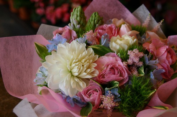 今日、お友達の出産祝いのアレンジをお店のお姉さんにお願いしましたバブーシュです。